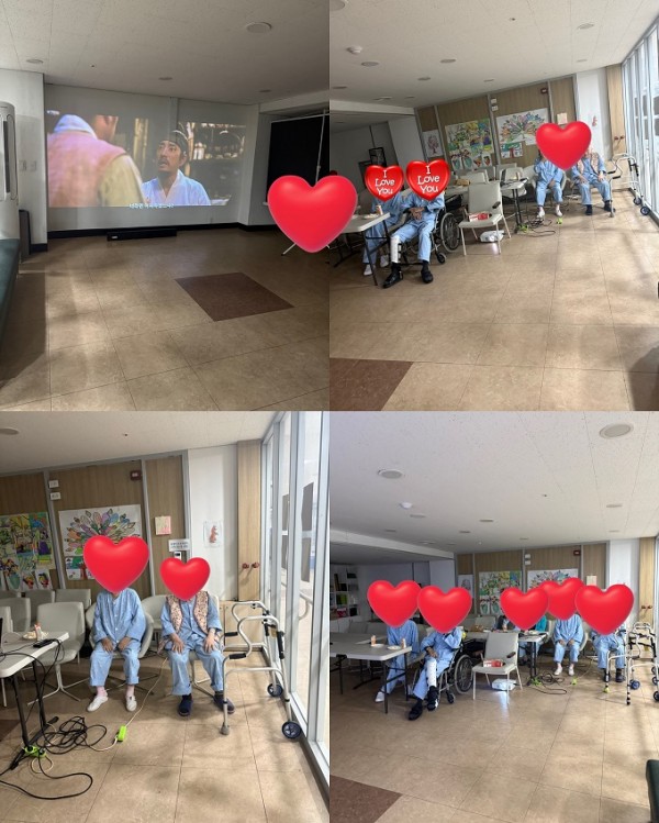 오늘 인일 요양병원에에서는 어르신들의 즐거운 여가 시간을 위해 프로그램실이 영화관으로 변신 하였습니다.