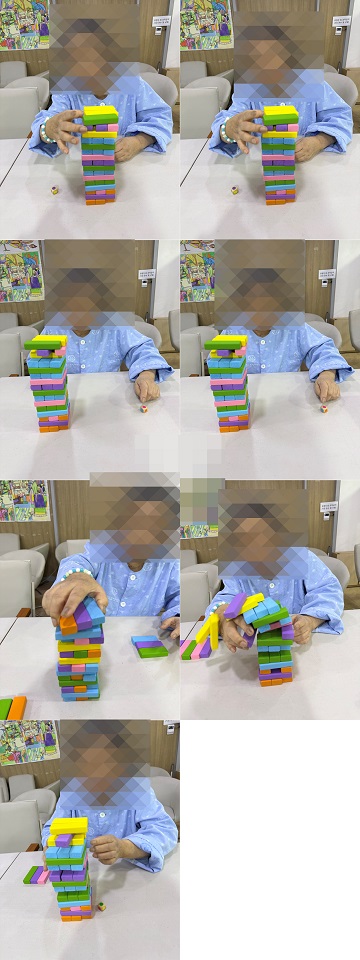 처음 젠가를 접하신 어르신들 중 일부는 블록이 무너질까 두려워 참여를 망설이시거나, 게임 규칙을 지키지 않고 활동을 진행하시기도 하였습니다. “천천히 무너져도 괜찮다”,“함께 협동하여 다시 쌓으면 된다”는 점을 반복적으로 설명하며 어르신들의 불안감을 완화하고 참여를 독려하였습니다.