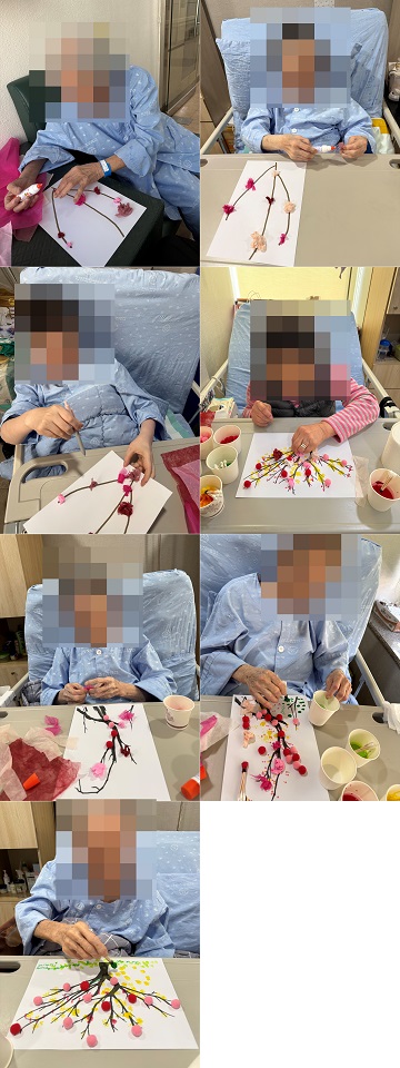 각 병동에서는 다가올 대형 협동화 ‘벚꽃나무’를 완성하기 위해 어르신들과 함께 작은 벚꽃나무, 활동을 진행했습니다.
