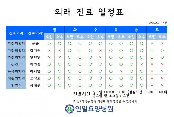 2022년 04월 외래 진료 일정표 페이지 정보 작성자 최고관리자 작성일20-07-27 10:18 조회10,397회 댓글0건 관련링크 이전글 다음글 본문 외래 진료 시 참고하시기 바랍니다. 목록