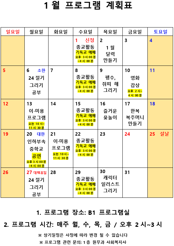 2020년 1월 사회복지 프로그램 계획표 페이지 정보 작성자 최고관리자 작성일20-01-06 11:06 조회9,762회 댓글0건 관련링크 이전글 다음글 본문 새해 복 많이 받으시길 바랍니다.^^ 목록