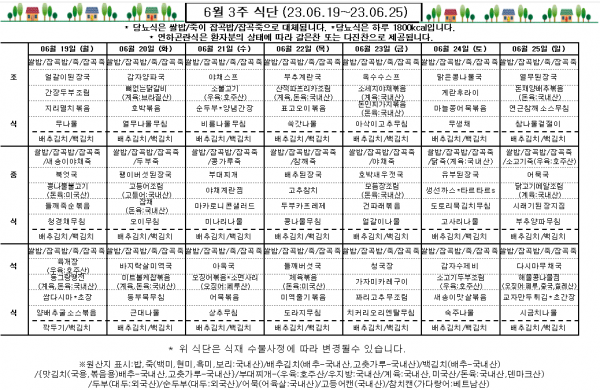 6월 3주 식단표