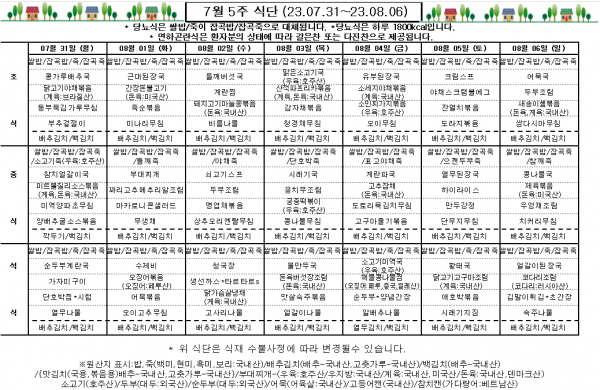 7월 5주 식단표