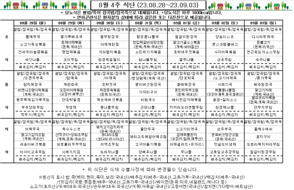"금주의 식단 메뉴를 확인 할 수 있습니다."