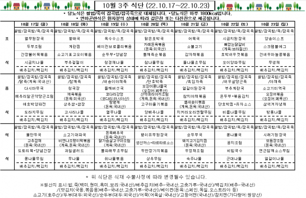 10월 3주 식단표