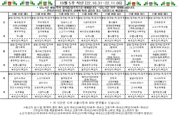10월 5주 식단표
