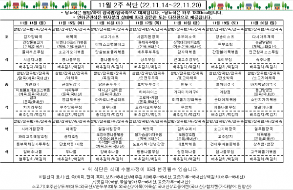 "금주의 식단 메뉴를 확인 할 수 있습니다."