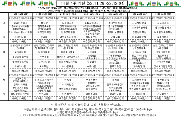 "금주의 식단 메뉴를 확인 할 수 있습니다."