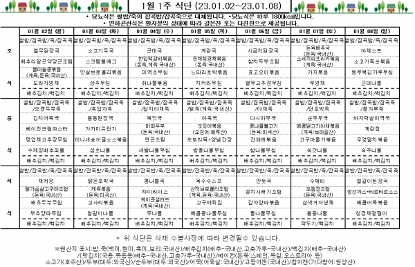 1월 1주 식단표