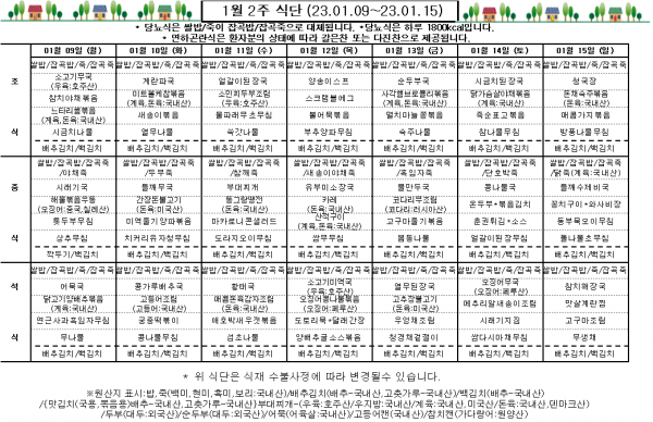 1월 2주 식단표