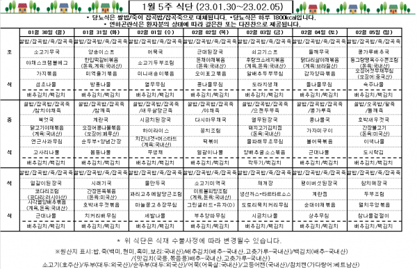 1월 5주 식단표