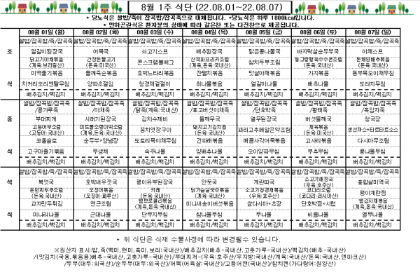 "금주의 식단 메뉴를 확인 할 수 있습니다."