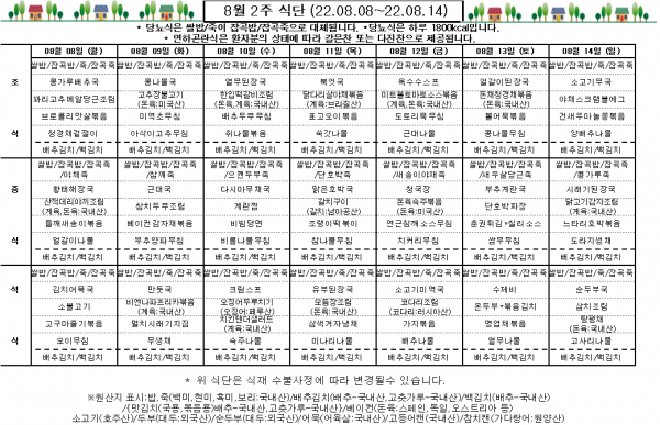 "금주의 식단 메뉴를 확인 할 수 있습니다."