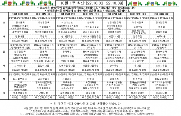 10월 1주 식단표
