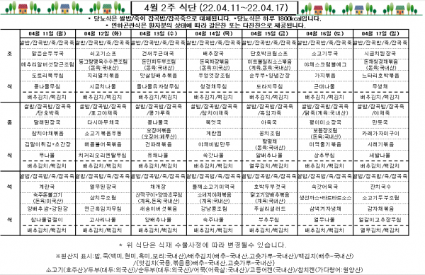 "금주의 식단 메뉴를 확인 할 수 있습니다."