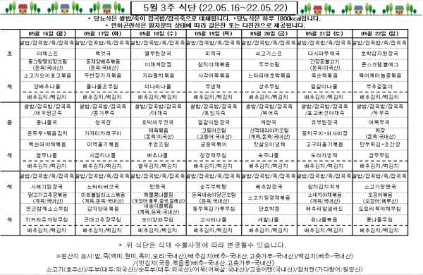 "금주의 식단 메뉴를 확인 할 수 있습니다."
