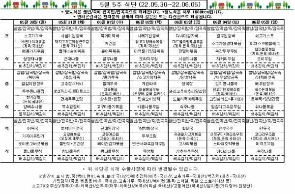 5월 5주 식단표