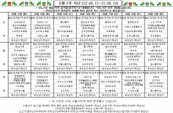 "금주의 식단 메뉴를 확인 할 수 있습니다."