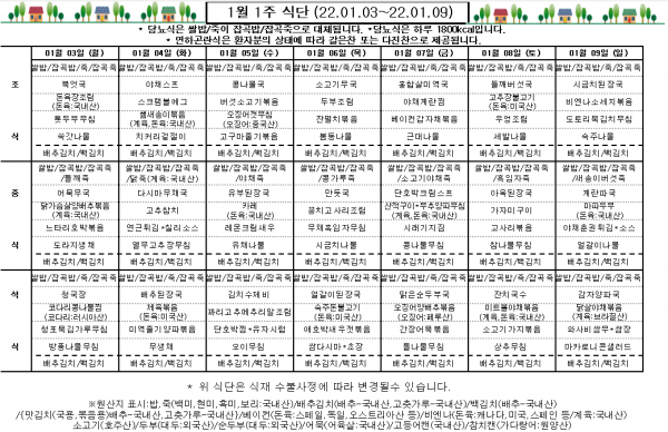 "금주의 식단 메뉴를 확인 할 수 있습니다."