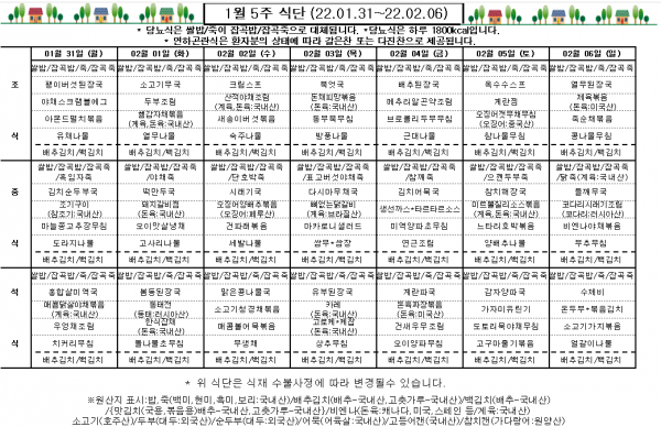 "금주의 식단 메뉴를 확인 할 수 있습니다."