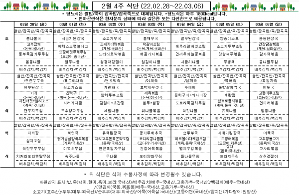 2월 4주 식단표