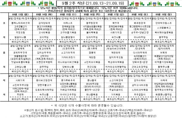 9월 2주 식단표