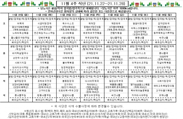 "금주의 식단 메뉴를 확인 할 수 있습니다."