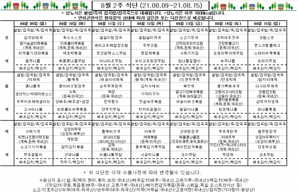 8월 2주 식단표