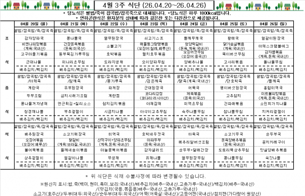 "금주의 식단 메뉴를 확인 할 수 있습니다."