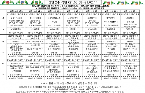 2월 2주 식단표
