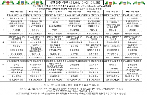 4월 3주 식단표