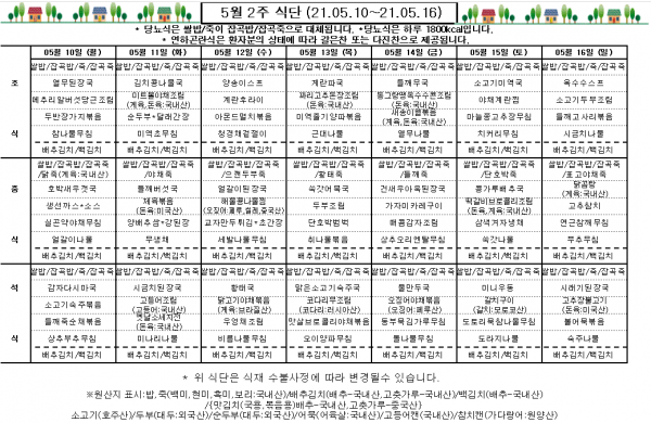 5월 2주 식단표