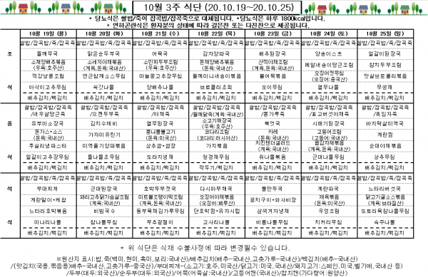 "금주의 식단 메뉴를 확인 할 수 있습니다."
