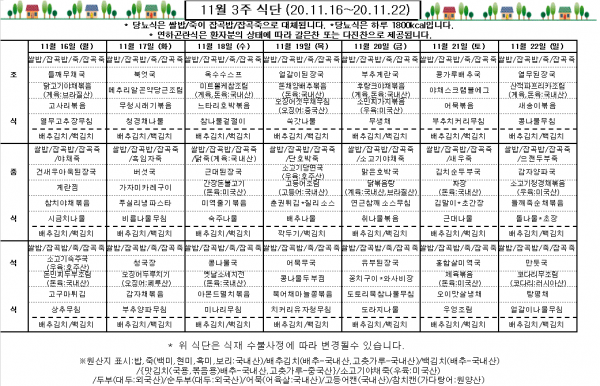 11월 3주 식단표