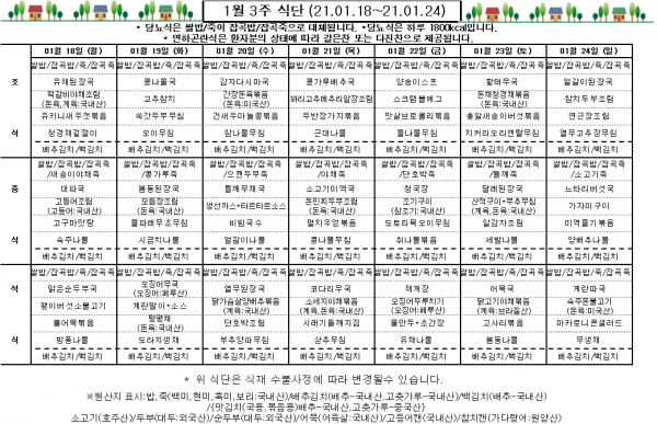 1월 3주 식단표