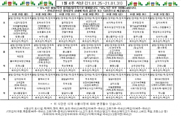 1월 4주 식단표
