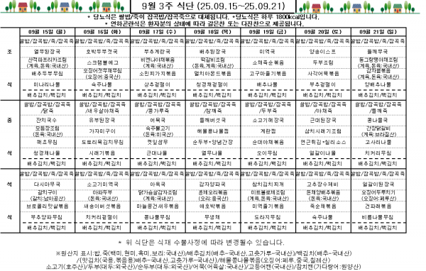 9월 3주 식단표