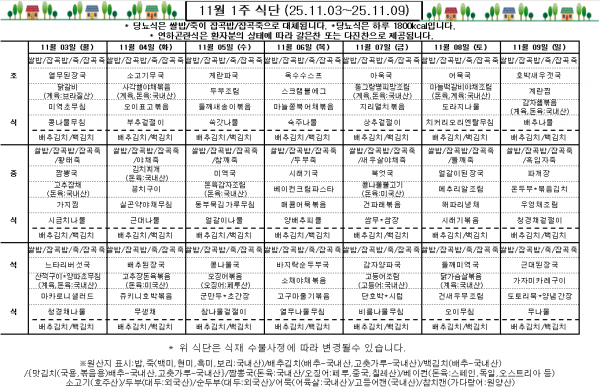 "금주의 식단 메뉴를 확인 할 수 있습니다."