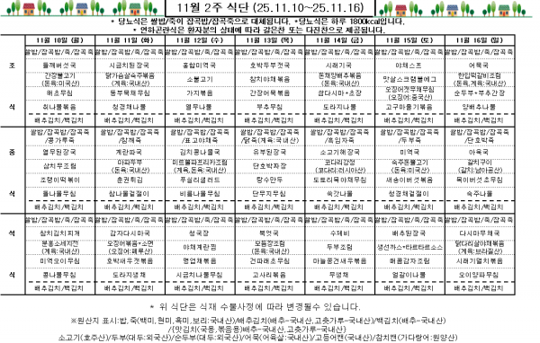 11월 2주 식단표