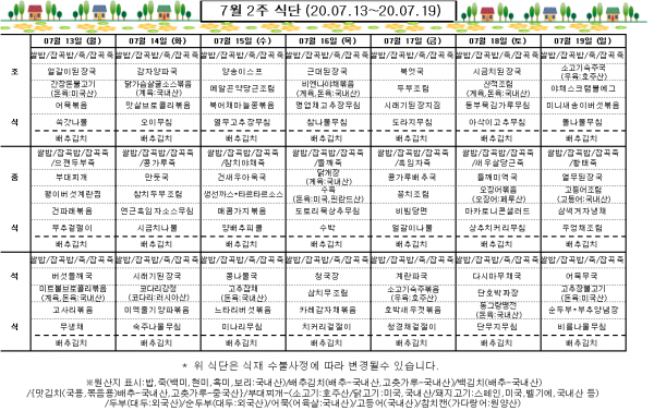 7월 2주 식단표