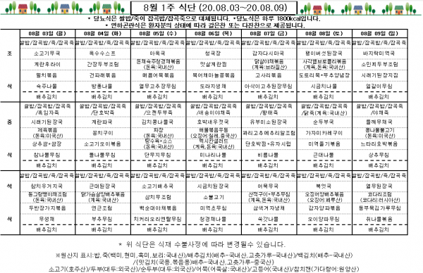 8월 1주 식단표