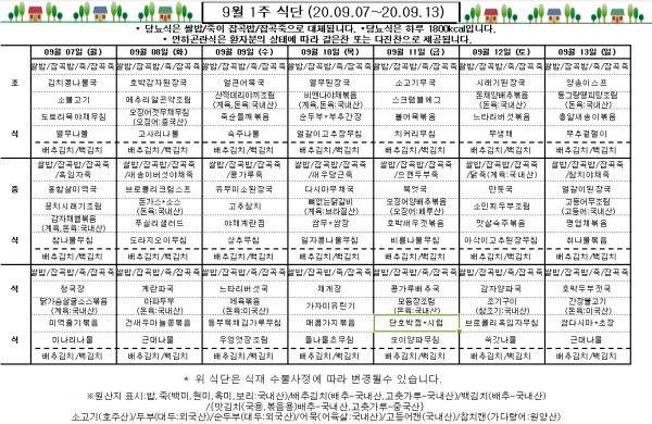 "금주의 식단 메뉴를 확인 할 수 있습니다."
