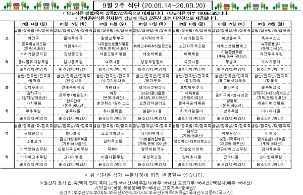 "금주의 식단 메뉴를 확인 할 수 있습니다."