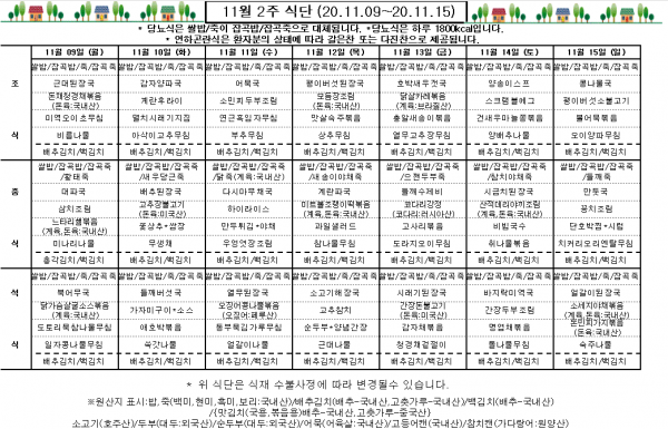 "금주의 식단 메뉴를 확인 할 수 있습니다."