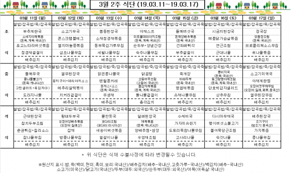 "금주의 식단 메뉴를 확인 할 수 있습니다."