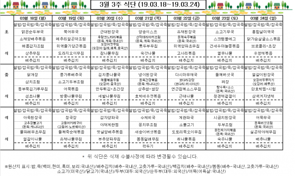 "금주의 식단 메뉴를 확인 할 수 있습니다."