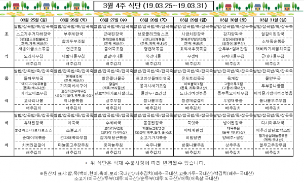 "금주의 식단 메뉴를 확인 할 수 있습니다."