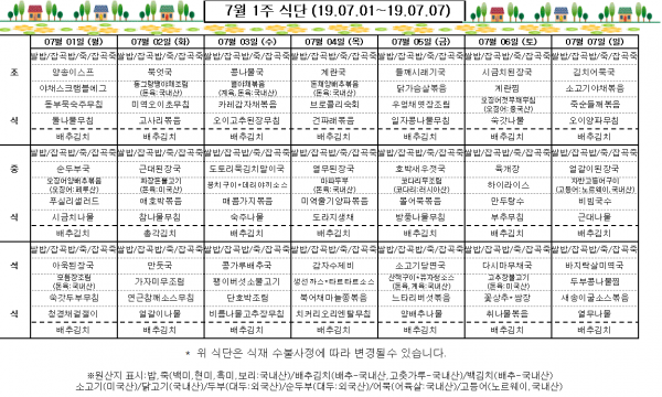 "금주의 식단 메뉴를 확인 할 수 있습니다."