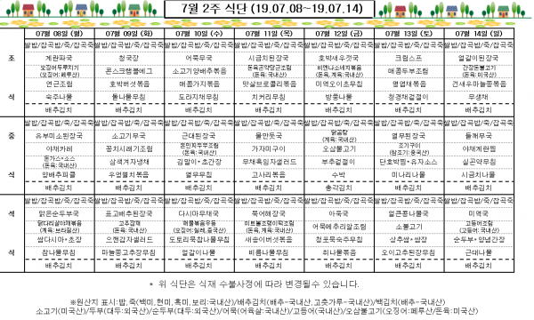 "금주의 식단 메뉴를 확인 할 수 있습니다."