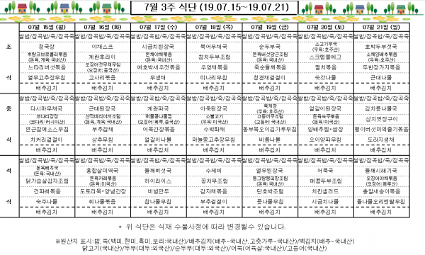 "금주의 식단 메뉴를 확인 할 수 있습니다."